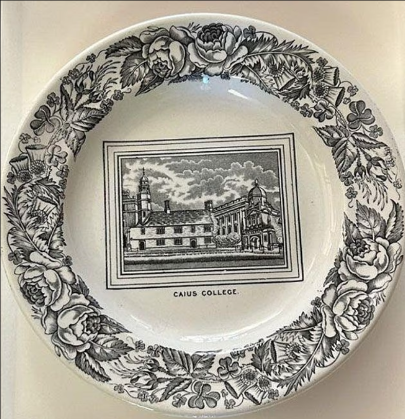 Tabağın ön yüzünde Caius Court’un bir görüntüsü yer alırken, arka yüzünde büyük harflerle “Caius Coll. Kitchens” ibaresi bulunuyor. Eser, artık Caius Koleji arşivcisinin gözetiminde güvenli bir şekilde saklanıyor.