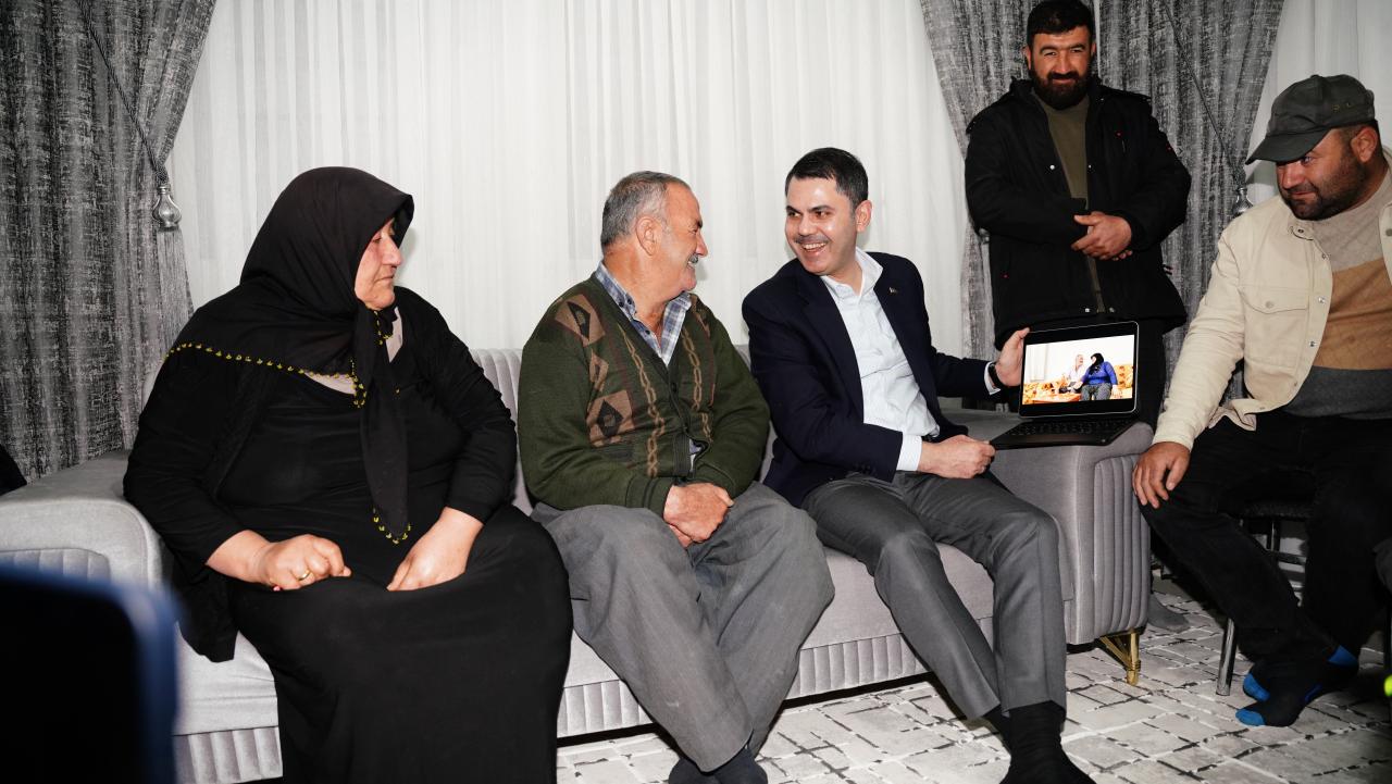 Bakan Kurum ise Cumhurbaşkanı Recep Tayyip Erdoğan’ın selamını aileye ileterek, “Allah böyle bir depremi bir daha yaşatmasın. Güle güle oturun. Biz seni izledik, üzüldük. Beraber ağladık, beraber mücadele ettik. Şimdi de sizi böyle görüyoruz ya dünyanın en büyük mutluluğu bu bizim için. O acı günlerden sonra bugünleri gördük ya Rabbimize şükrediyoruz, hamdediyoruz” ifadelerini kullandı.