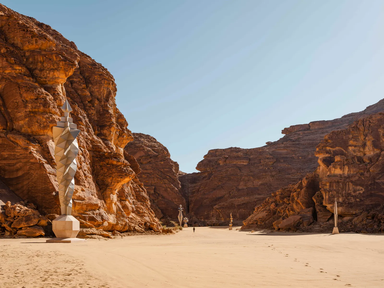 Festivalin ana bölümlerinden Desert X AlUla, 16 Ocak’ta açıldı ve 28 Şubat’a kadar devam edecek. Açık hava sergisi kapsamında AlUla’nın vadileri ve kanyonları içinde konumlandırılan on yeni mekâna özgü yerleştirme izleyiciyle buluşacak. Yapıtlar, ziyaretçilerin belirlenen yürüyüş rotaları üzerinden deneyimleyebileceği biçimde geniş bir alana yayılacak.