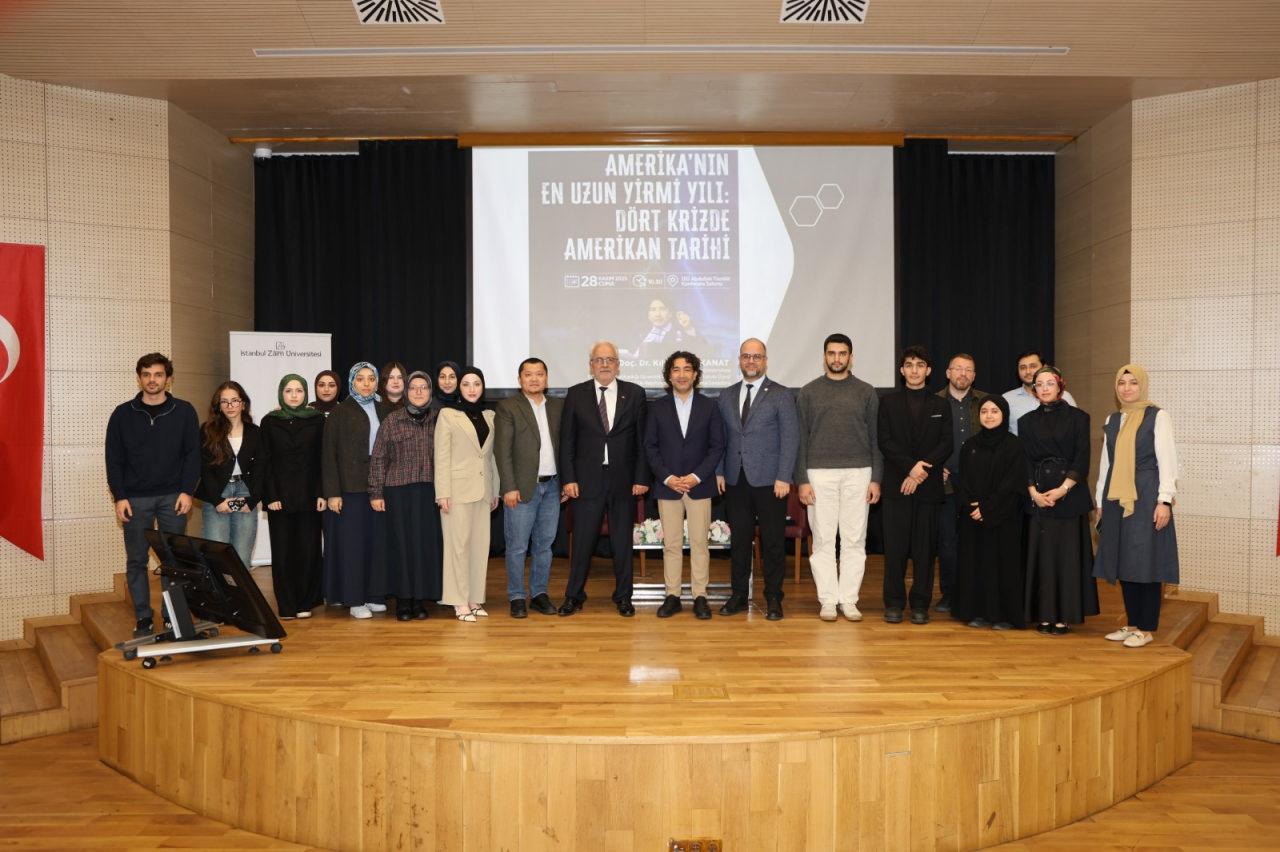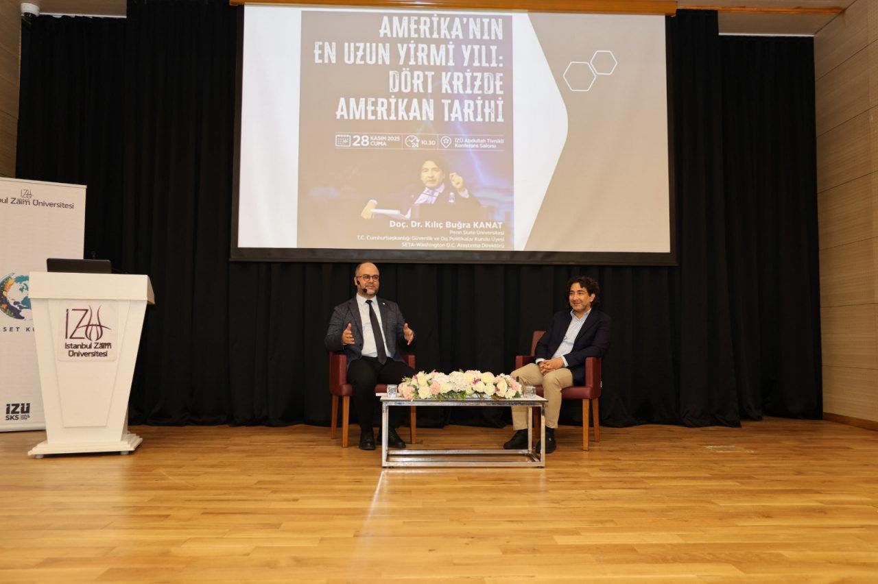İZÜ Rektörü Prof. Dr. Ahmet Cevat Acar, Rektör Yardımcısı Prof. Dr. Erhan İçener, akademisyenler ve öğrencilerin katıldığı programın açışında konuşan Prof. Dr. Acar, ABD’yi yakından gözlemleyen bir akademisyenden dinlemenin önemine dikkat çekerek, “Amerika İkinci Dünya Savaşı’ndan beri Türkiye’nin müttefiki. Dünyanın her yerine uzanan bağlantıları var ve orada yaşanan değişiklikler dünya siyaseti üzerinde derin etkiler bırakıyor.” dedi.