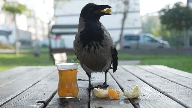 OTOBÜS KAPTANININ ‘GURME’ KARGASI ORGANİK GIDALARI SEVİYOR