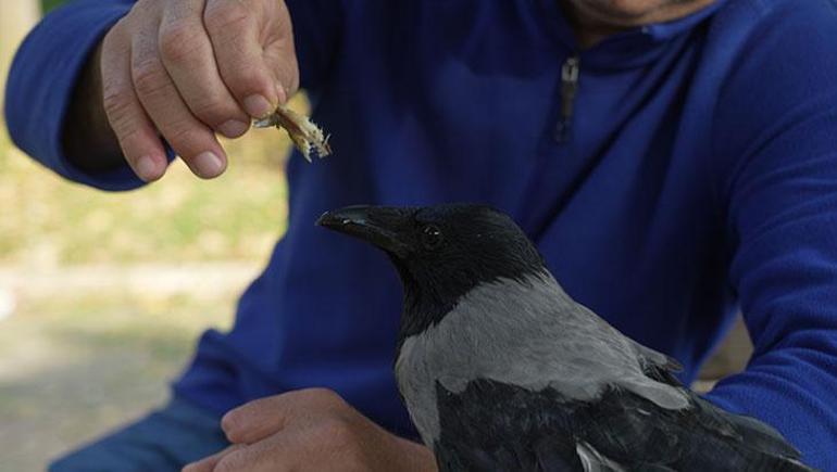 Kargayı yavruyken sakat bir halde bulduğunu belirten Ömer Tek, “Sakattı, tedavisini yaptım. Tam 2,5 sene oldu, benden ayrı durmuyor. Nereye gitsem peşimde geliyor. Hamsi, istavrit ve balığı çok seviyor. Ona özel olarak Rize’den helva getiriyorum. Helvasını çok yiyor, çay da içiyor. Aynı aileden biri oldu, nereye gitsem götürüyorum. Onunla otobüse de biniyorum” dedi.